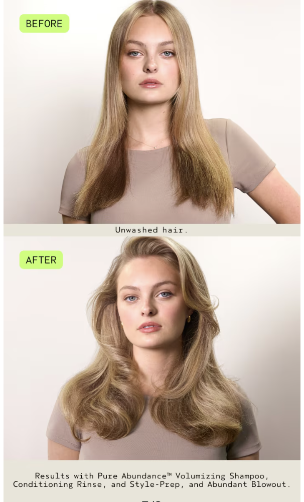 **When using Pure Abundance™ Volumizing Shampoo and Conditioning Rinse for fine hair.