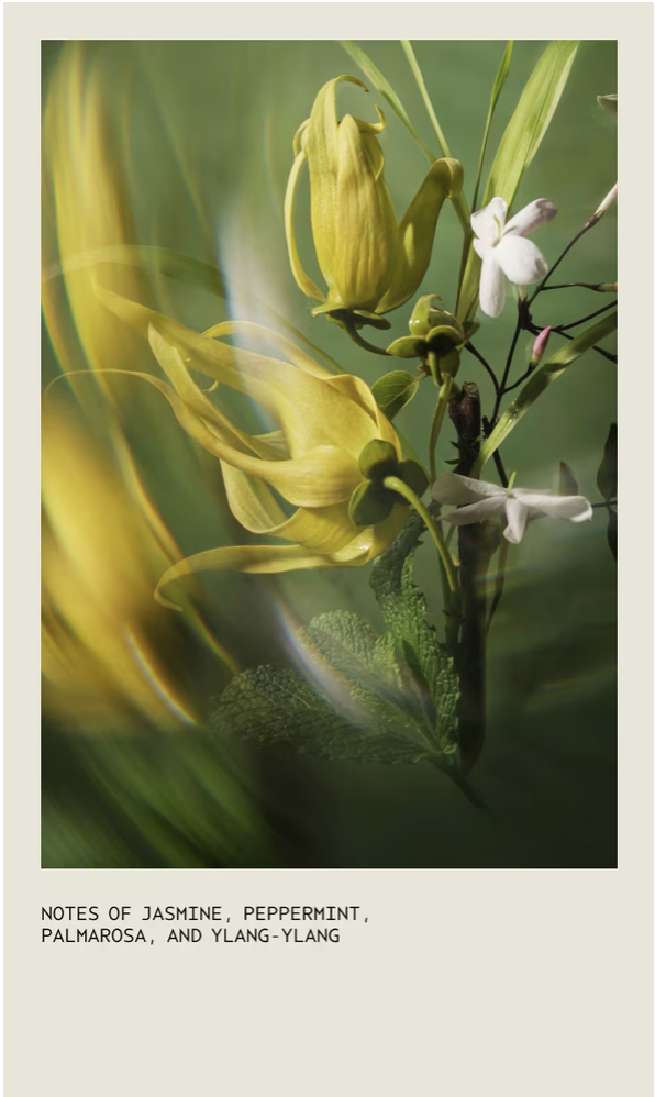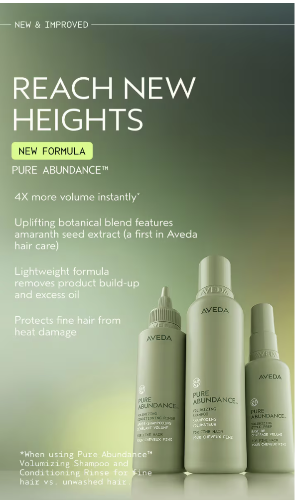 Featuring Aveda’s own Pure-Fume™ aroma with jasmine, peppermint, palmarosa, ylang-ylang, and other pure flower and plant essences.